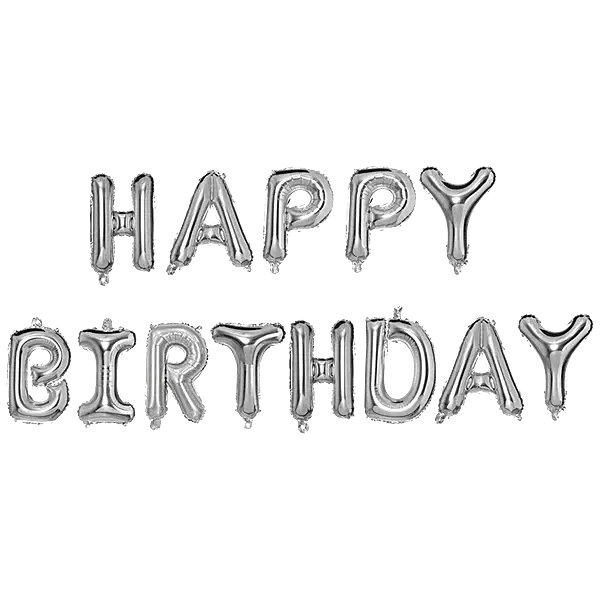 Happy Birthday Silver Foil Balloons in Small Letters for Birthday Decorations